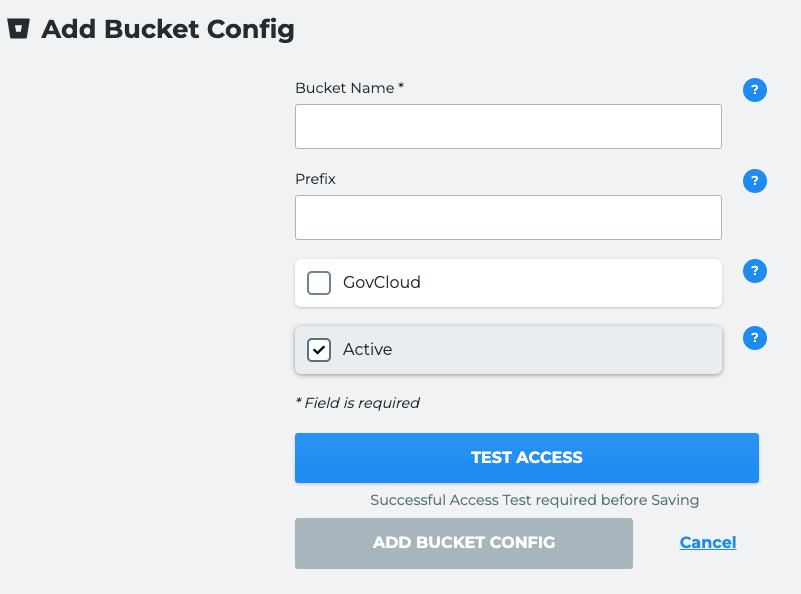 - Once the Test Access is successful, click the Add Bucket Config button to complete the configuration
